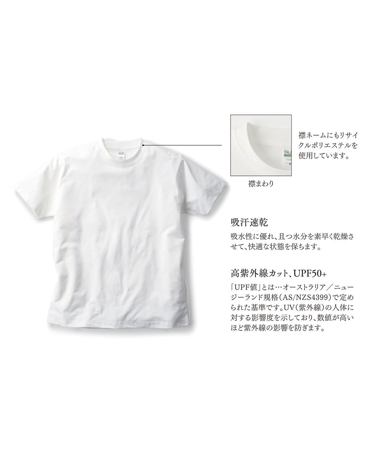 | 高紫外線カット、UPF50+ | 「UPF値」とは…オーストラリア/ニュージーランド規格(AS/NZS4399)で定められた基準です。UV(紫外線)の人体に対する影響度を示しており、数値が高いほど紫外線の影響を防ぎます。 |