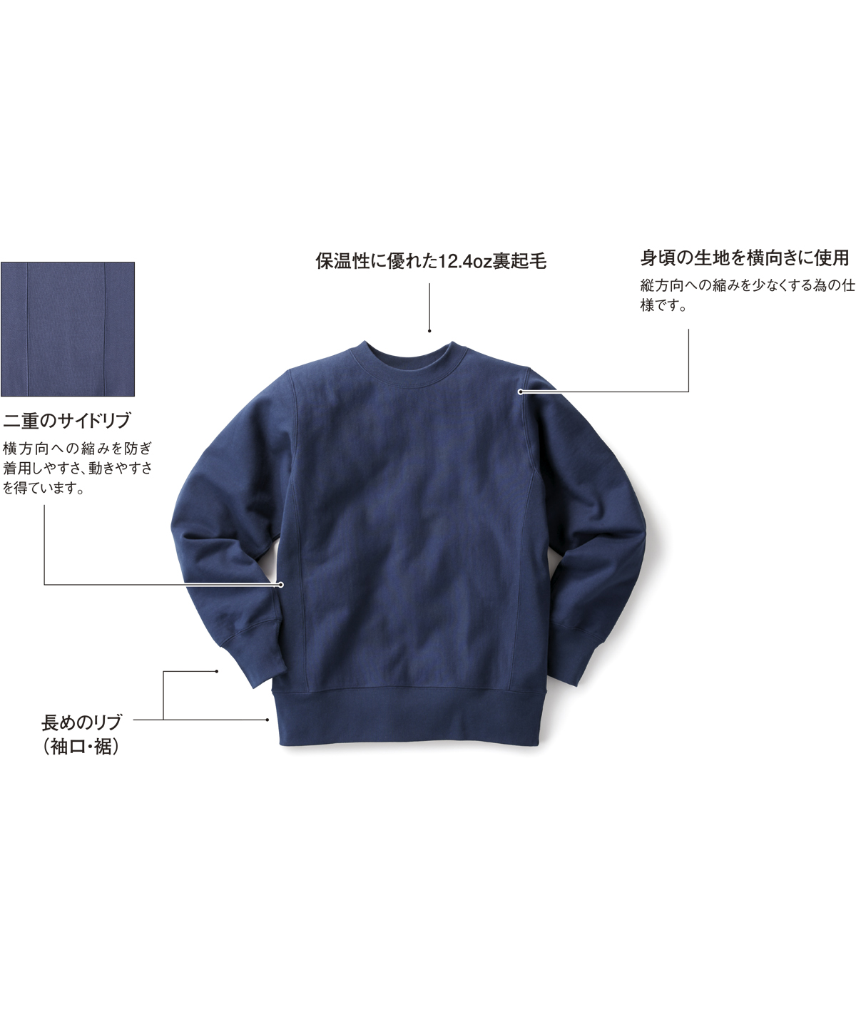 | 保温性に優れた12.4oz裏起毛 |