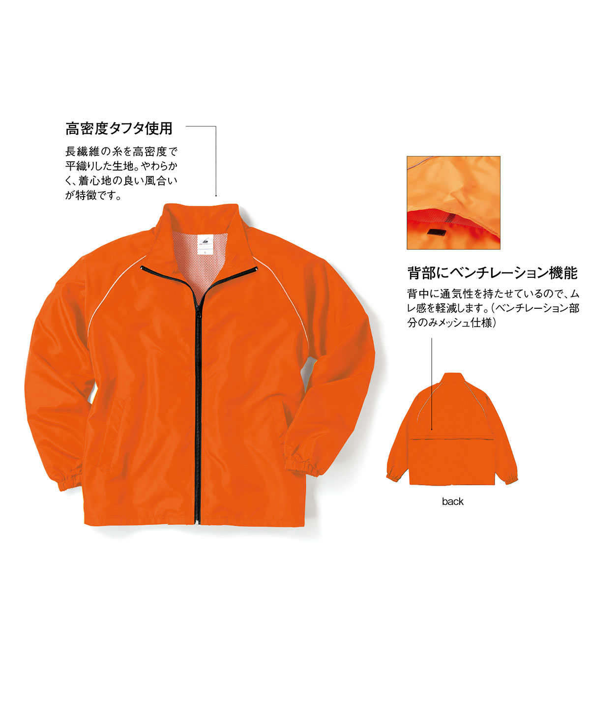 | 高密度タフタ使用 | 長繊維の糸を高密度で平織りした生地。やわらかく、着心地の良い風合いが特徴です。 |