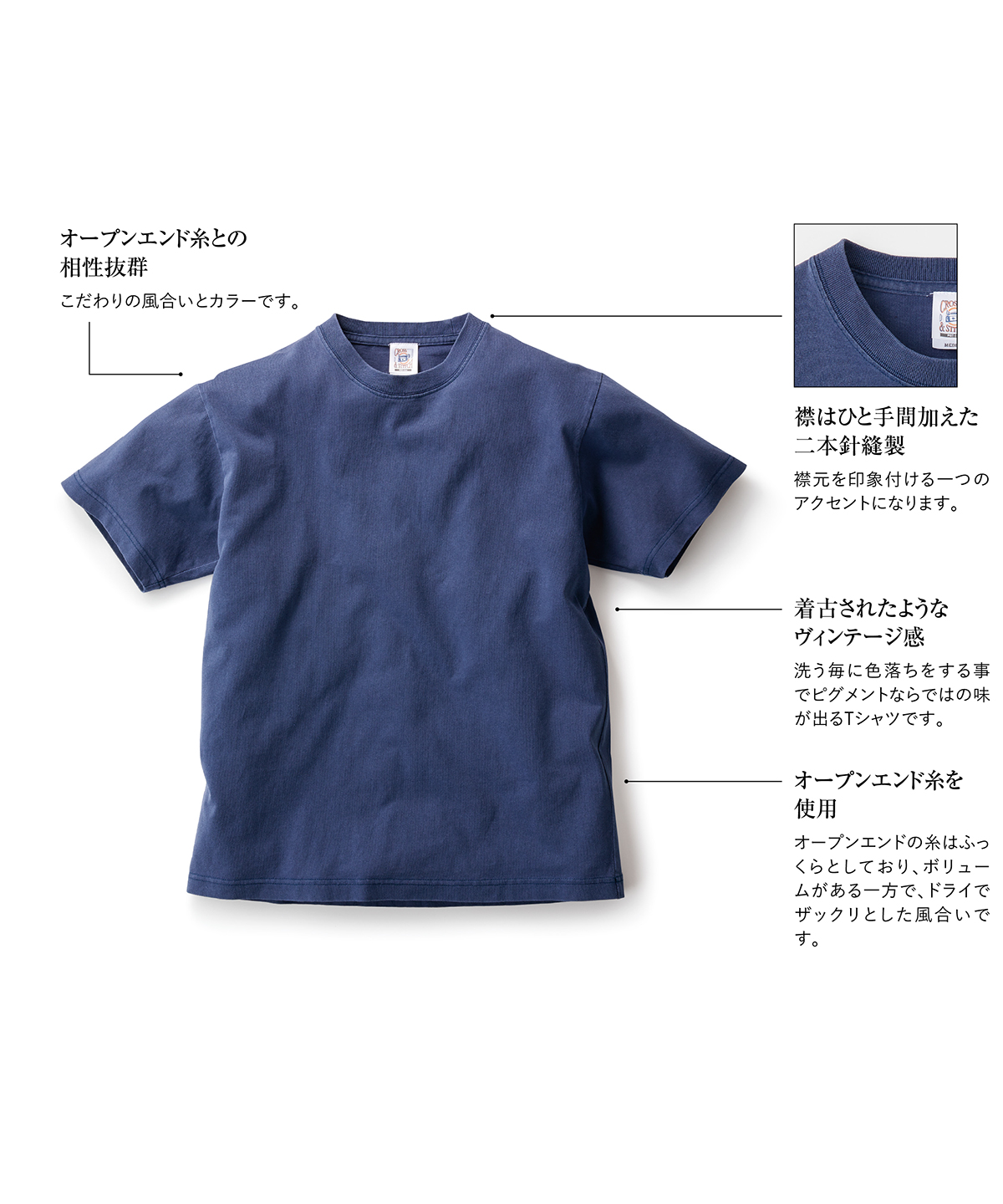 | オープンエンド糸との相性抜群 | こだわりの風合いとカラーです。 |