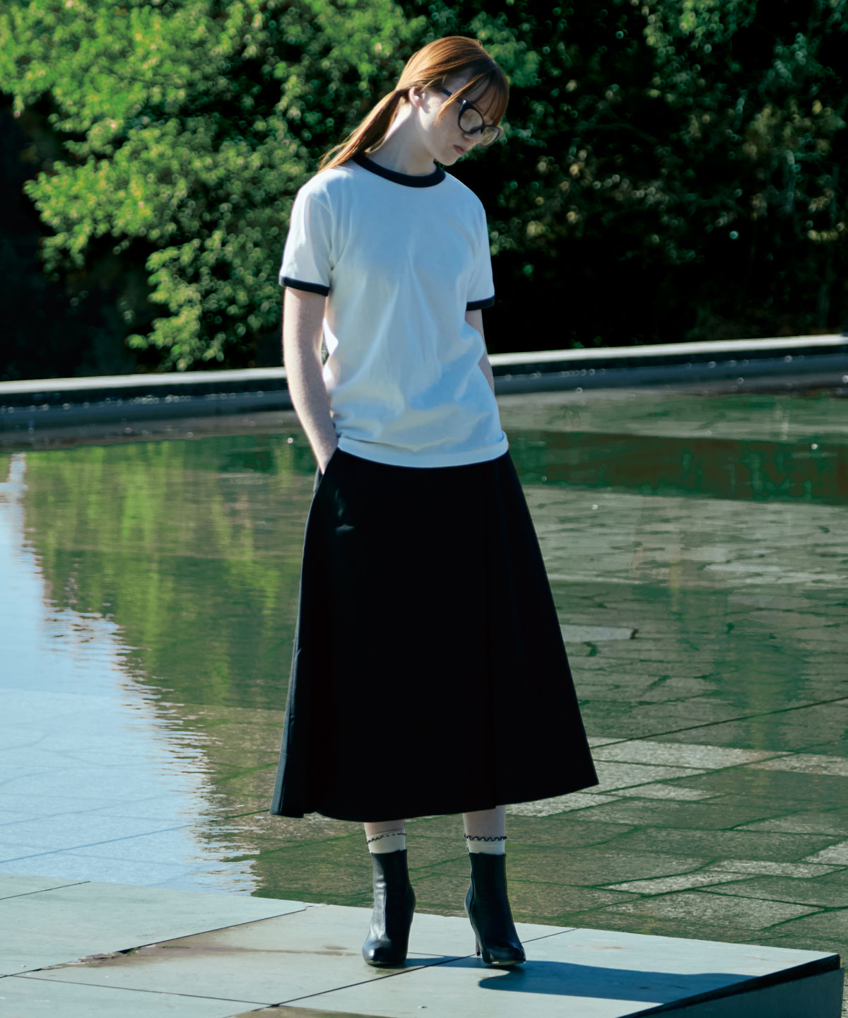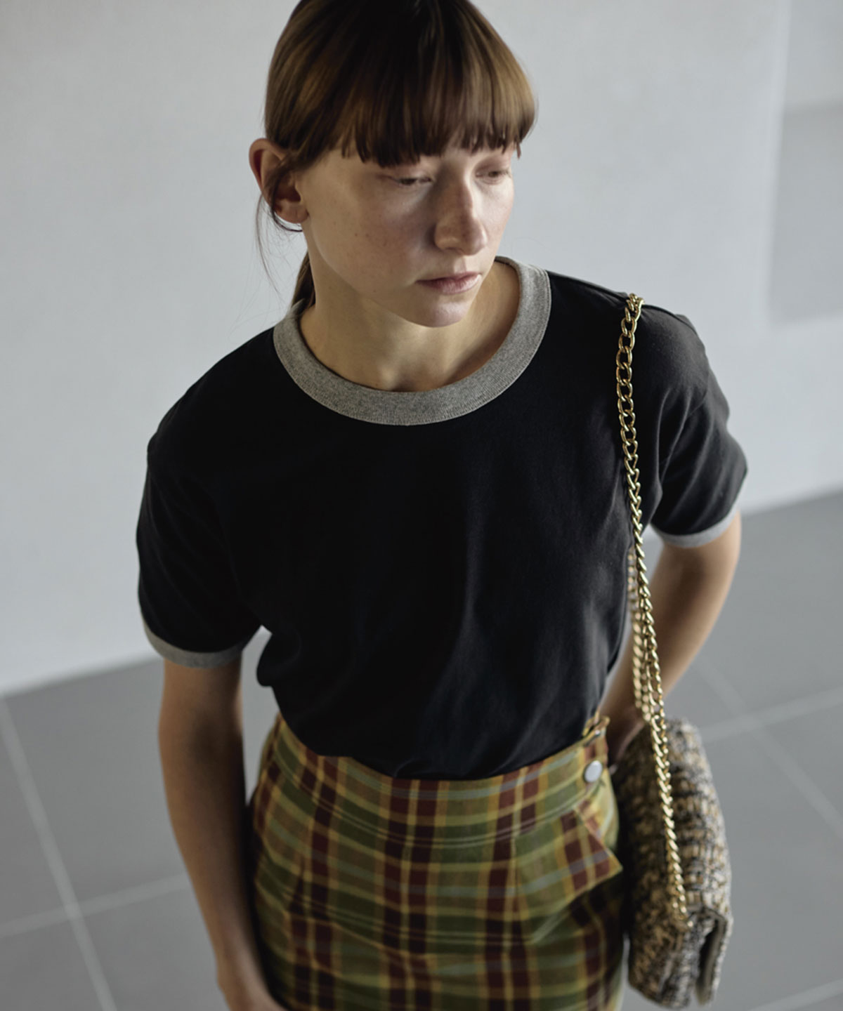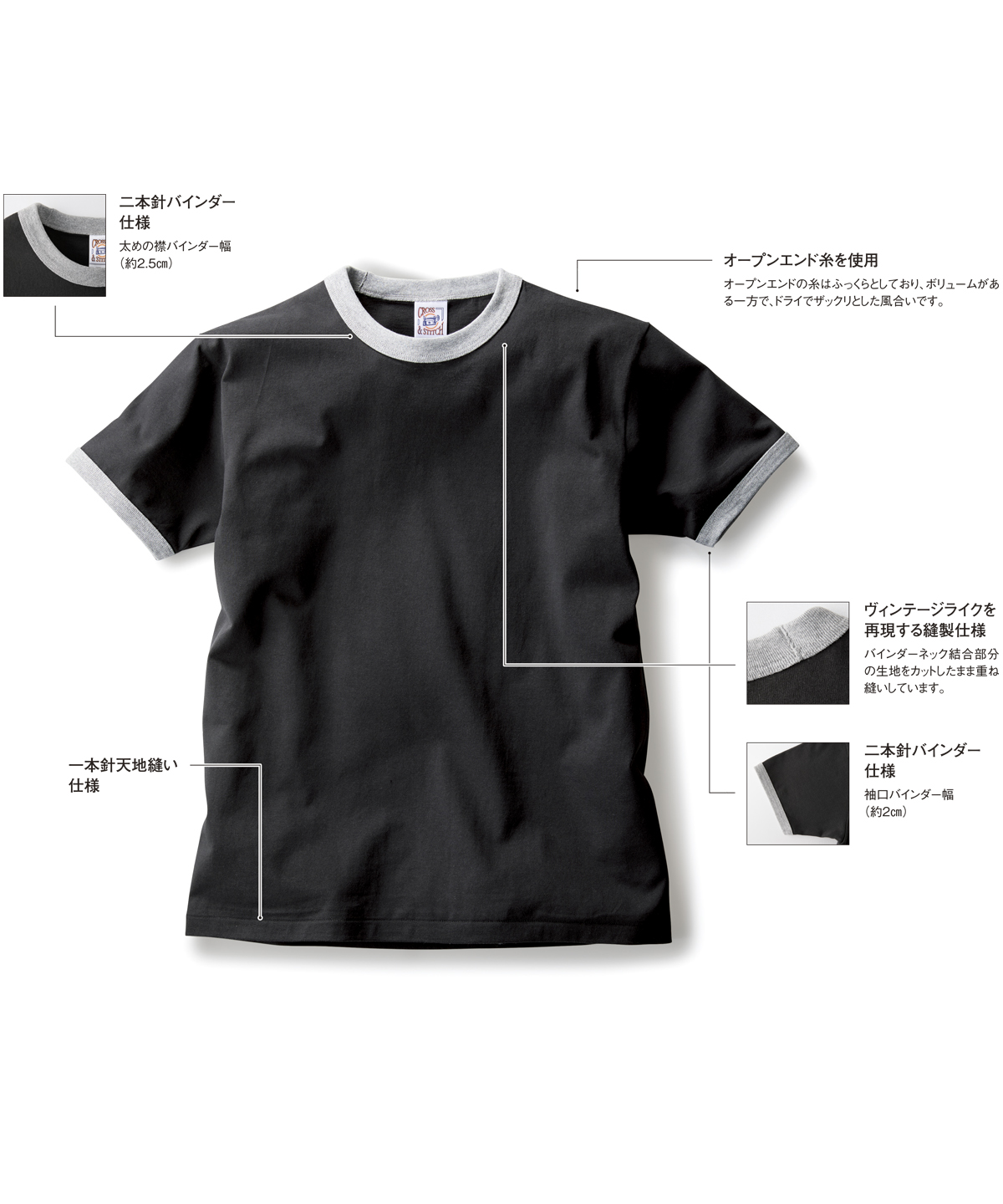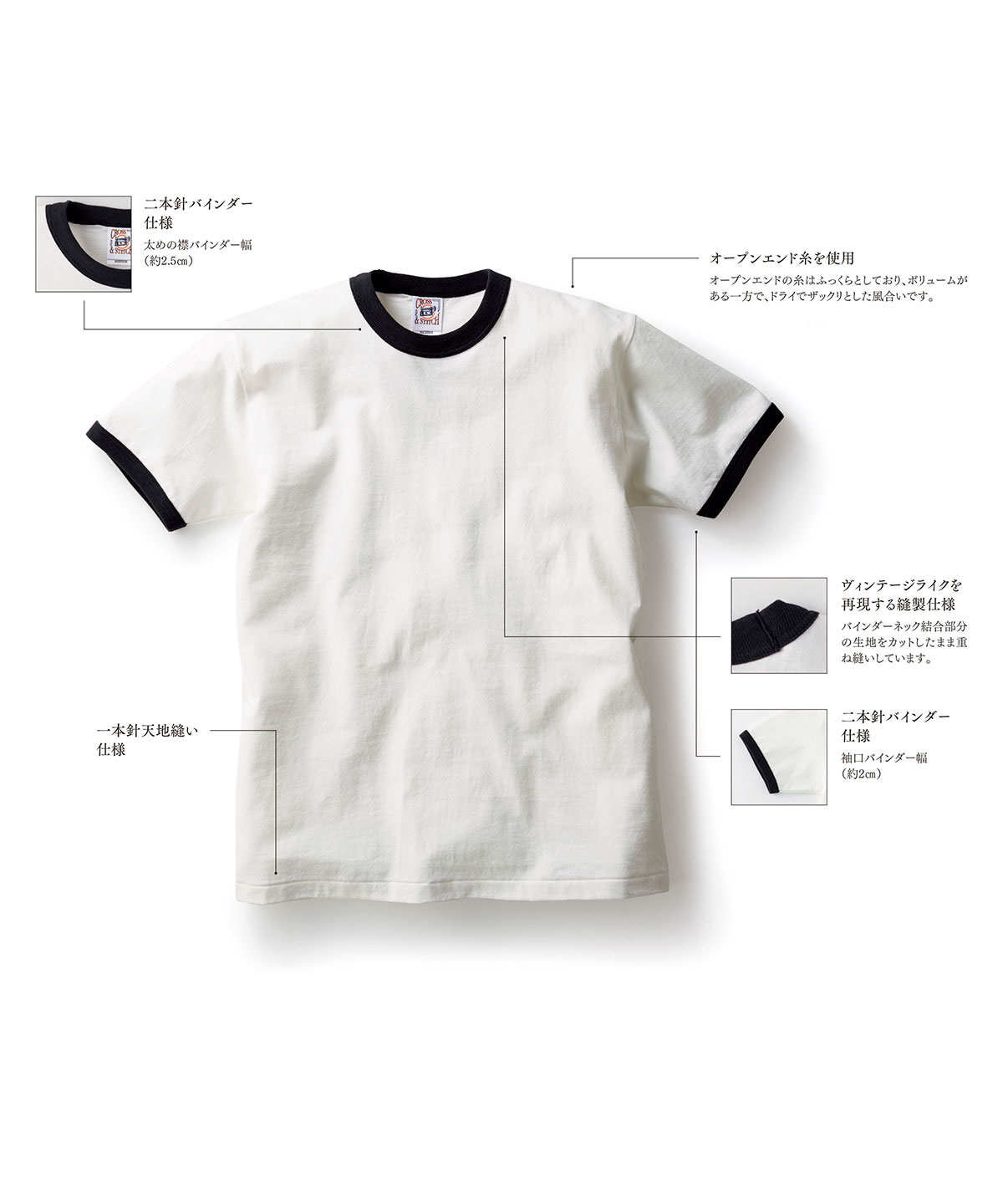 | ヴィンテージライクを再現する縫製仕様 | バインダーネック結合部分の生地をカットしたまま重ね縫いしています。 |