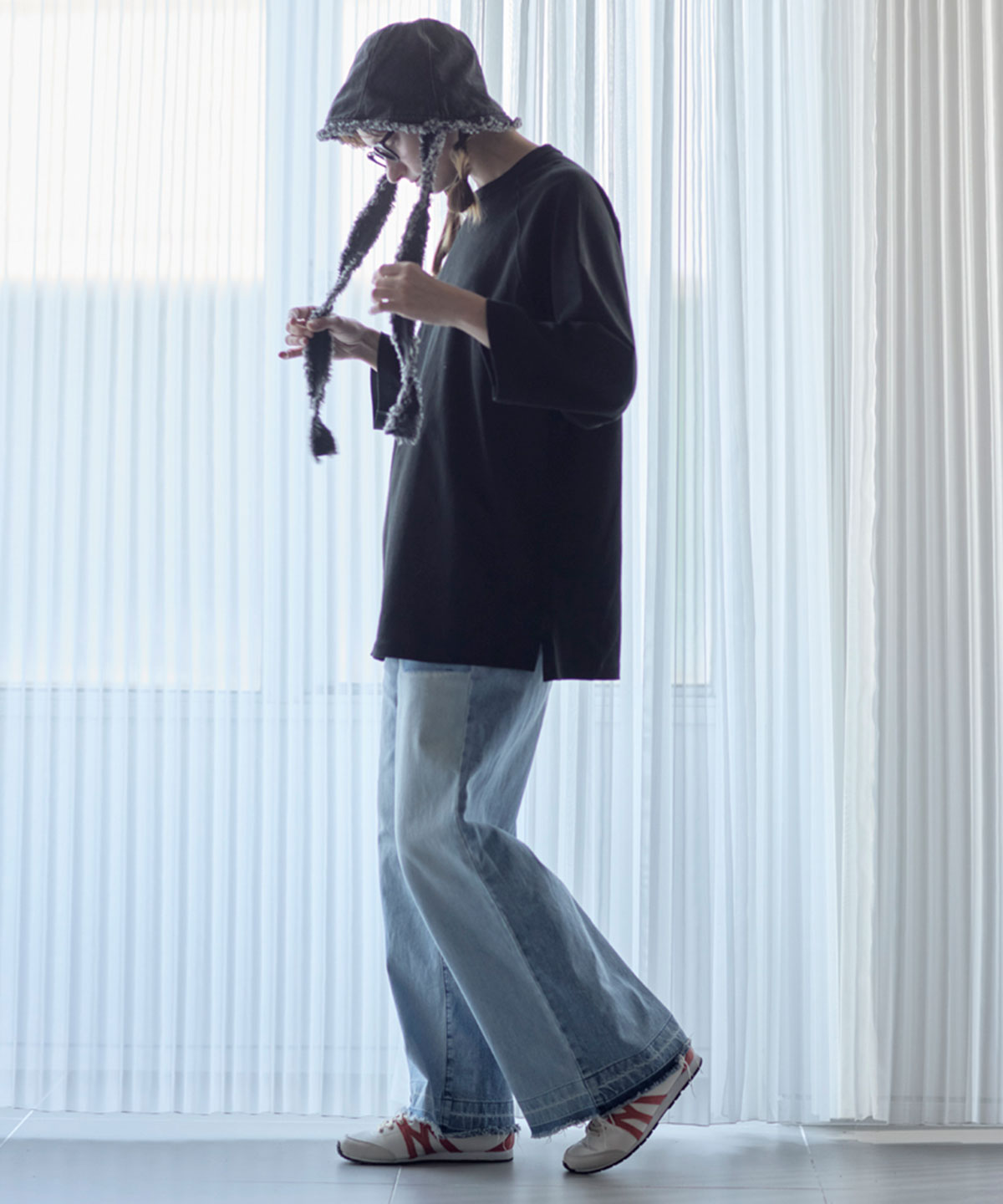 | ヴィンテージライクを再現する縫製仕様 | バインダーネック結合部分の生地をカットしたまま重ね縫いしています。 |