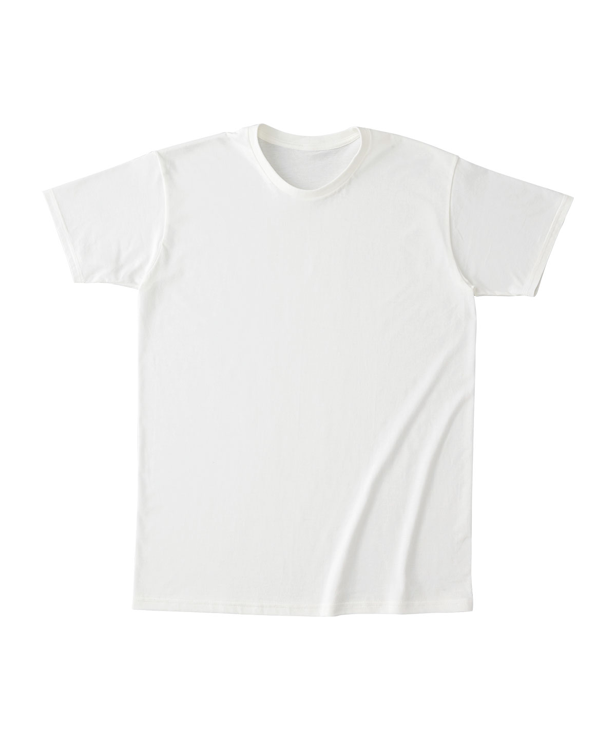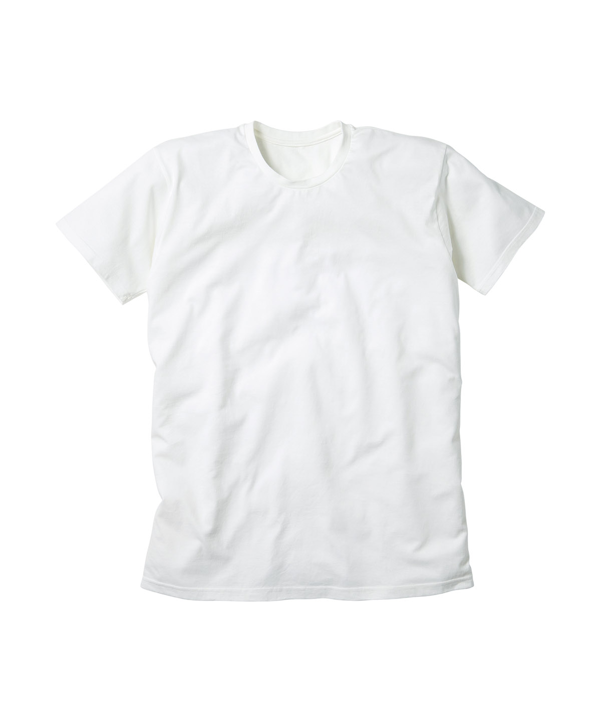| 下晒工程まで入れた生地を綿糸で縫製した製品染め専用のTシャツで、柔らかな風合いが特徴。 定番のひとつになりつつある細いリブ幅、細身のシルエット仕様。 |
