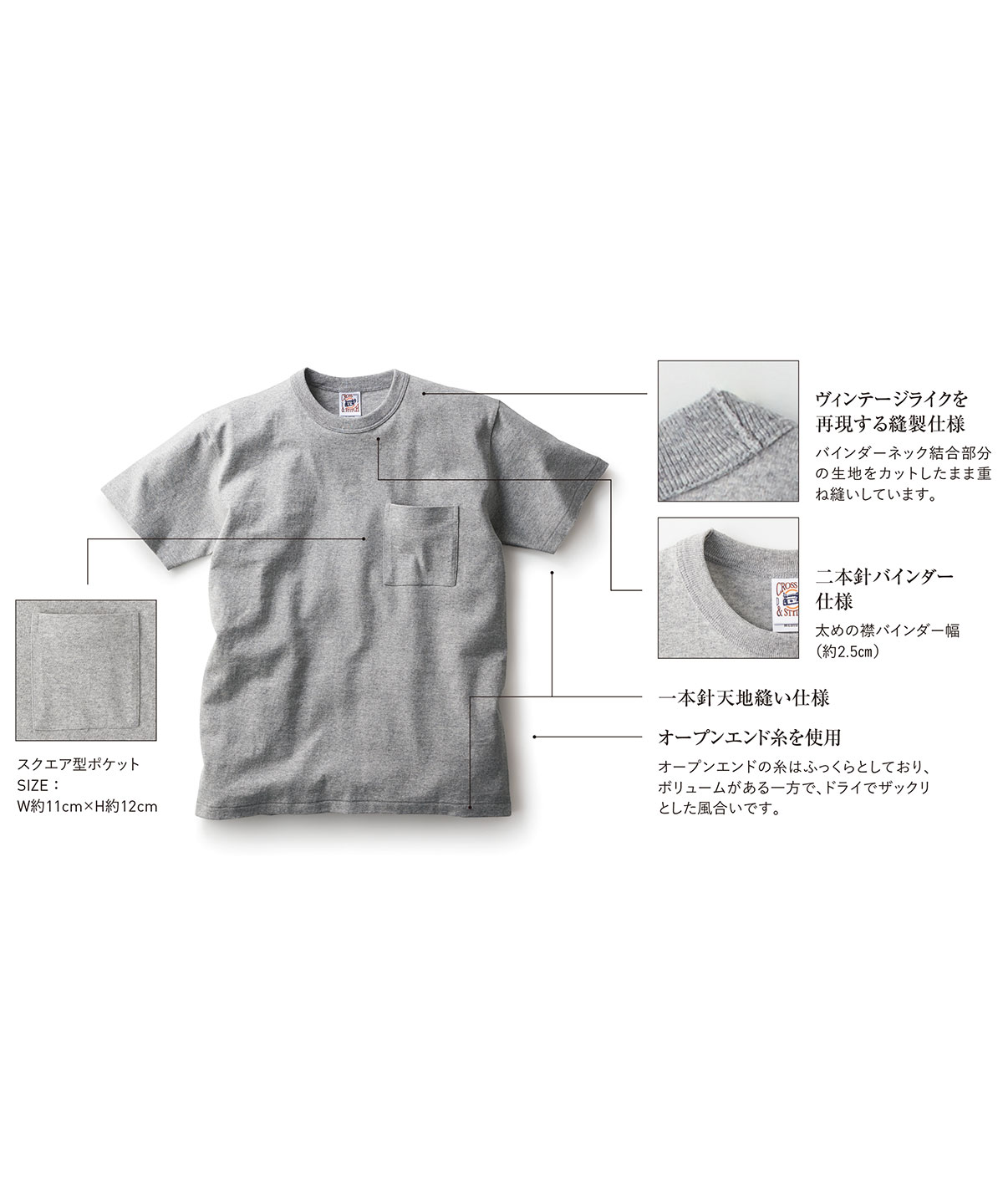 | オープンエンド糸を使用 | オープンエンドの糸はふっくらとしており、ボリュームがある一方で、ドライでザックリとした風合いです。 |